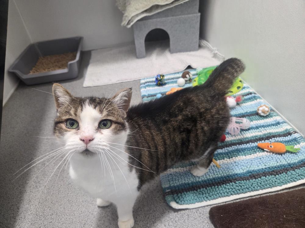 This beautiful, friendly senior feline is Muta. She is a real sweetheart, who loves to be with her people and the quiet relaxed life. She does have a heart murmur but this doesn't affect her - it just means she will need checks with the vet more to keep an eye on it as she gets older. Don't let that or her age fool you though she still really enjoys her toys and will happily play with her fluffy mouse or chase a ball but once she has done her daily exercise she wants a nice comfy lap to snuggle into to for a quick cat nap. This girl really is an amazing lady!