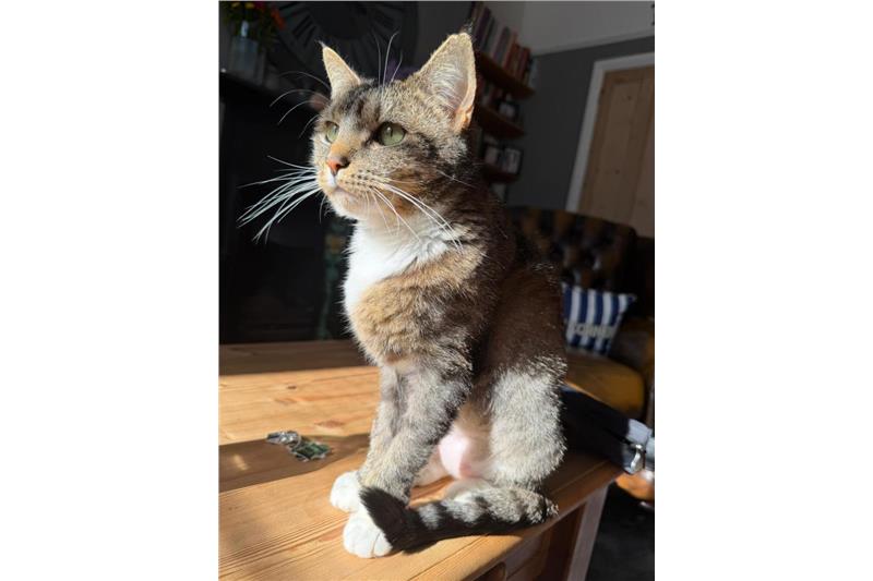 Bindy’s story is one of resilience and transformation. When she first arrived in our care, she was clearly overwhelmed by the stresses of living in a busy multi-cat environment, displaying signs of anxiety such as excessive fur licking and trembling like a leaf. Through dedicated support and gentle intervention, Bindy has blossomed into a friendly and outgoing three-year-old, with her lovely coat now showing remarkable regrowth.
