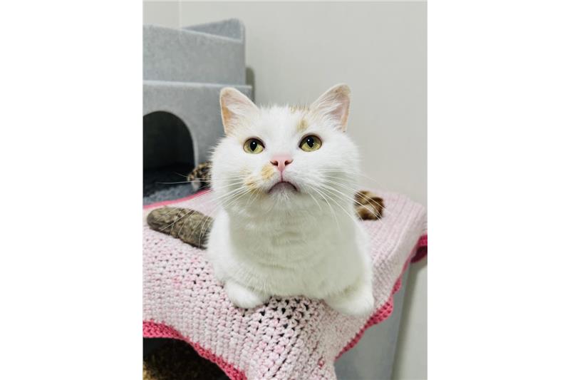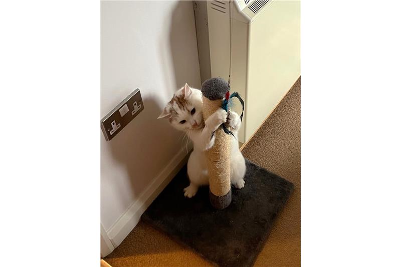 Leo is such a sweetheart and truly one of the gentlest cats you could ever meet. He loves a fuss and has the cutest habit of giving you a little scent mark to say hello! His favourite place to relax is tucked up on a couch or in a shelf, but the moment you step into the room, he’ll wander out to greet you, usually with an adorable big stretch!