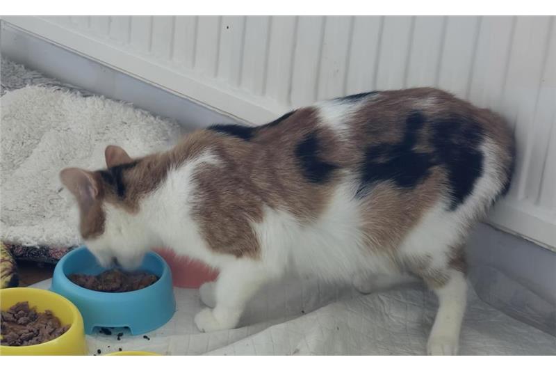 This is Katie, she is a young 4 year old mum and has recently had a litter of 5 lovely kittens. She is very gentle and talkative (especially when her food bowl is empty). Very clean in herself and with her litter tray. Loves to have strokes and to be with you all the time. Very petite Tortie and White, and would like to have a nice quiet place to call home, with a safe garden to play in, and maybe some other green spaces to explore. She needs a slave or two to do her bidding and provide the lifestyle that she'd like to become accustomed to.