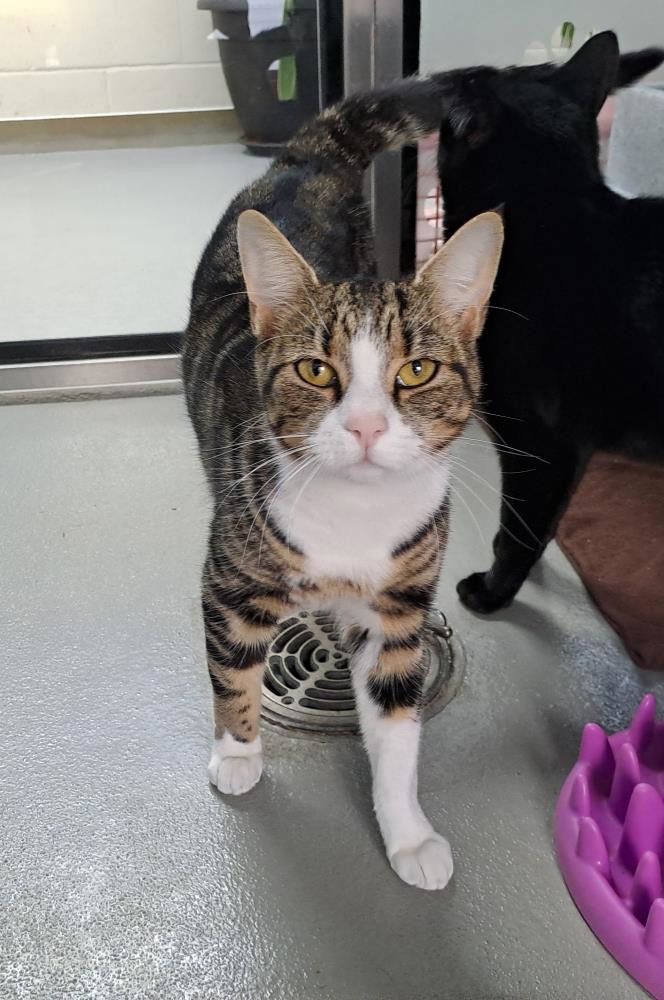 Meet Lily & Bear, a bonded pair looking for a home together. Both are friendly cats although Bear is the more confident of the two and is often found waiting at the pen door to greet people. He enjoys a fuss and especially a good head rub, sitting on laps, being groomed, and playing – either on his own or with you, but likes a little “me time” too, moving away when he feels he’s had enough attention for now. Although Lily loves to play and enjoys a fuss too, she can be a little more reserved at first, liking to take a moment to assess things, but don’t let that fool you as her confident side soon shines through. Bear and Lily have a lovely relationship, with Bear often washing Lily and they can often be found taking naptimes together on their shelf. Lily and Bear are young, active cats who thrive with plenty of space and enrichment – they can get a little overstimulated in their enthusiasm sometimes, with may result in a little mouthing so would suit either an adult-only home or one with older children, and with no other pets willing to gently guide them away from this behaviour.