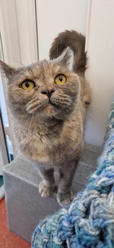 Isla came into our care when her owner died. She likes lots of attention and is a sweet little cat. She's also inquisitive and is very interested in what is going on.