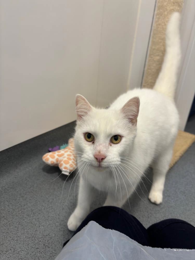 Meet sweet Tuppie, who unfortunately came into our care after his last owner passed away. Tuppie can be a little wary of new people but once he gets used to you, which may take some time, he will come over and happily accept lots of fusses. You can also find him in his bed purring and padding away. We are looking for a nice quiet household with no other pets to allow Tuppie to settle in, as he can get easily startled. If you think you can offer Tuppie a loving, quiet and patient household then please pop down to the centre between opening hours.