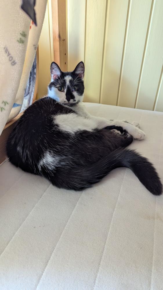 Once he has your full attention he loves to get plenty of pets and likes to lean into you to rub his face against yours if he gets the chance! Other than giving lots of love to the staff and volunteers you can find him cosy in his donut bed.