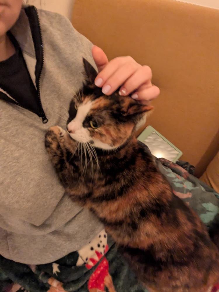 She has been with our fosterer for a few weeks now and we can't understand why she hasn't found her forever home. She is a very sweet natured, friendly, playful cat who loves a cuddle. We are looking for a quiet adult home with no other cats or dogs. Penny is used to going outside so once she settles in and bonds with you, it would be nice to give her the option of outdoor space. Are you able to give your home and love to this sweet girl?