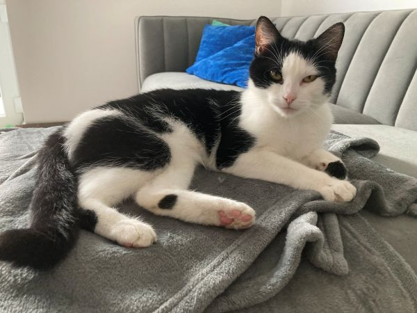 Gemma (black and white) brings the playful energy to the pair. She loves interactive play, especially chasing wand toys and lazer pointers, and will happily show off her playful side when it’s time for games. When playtime is over, Gemma enjoys attention and pets and she’ll gladly soak up affection from her humans.