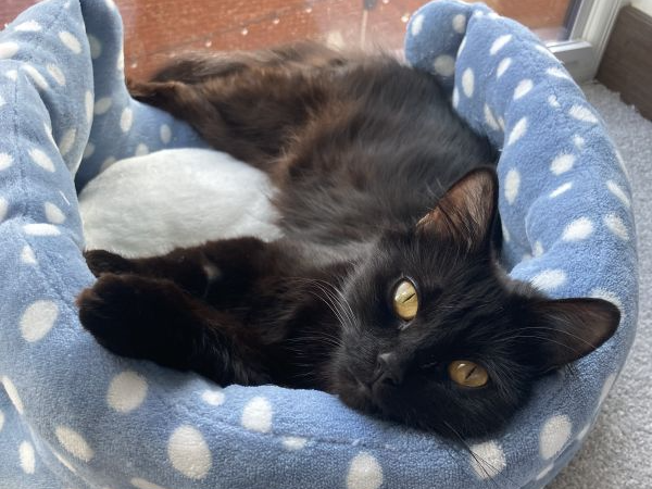 Ginny (black and fluffy) is the more confident and inquisitive one of the duo; always curious about what’s going on around her and happy to explore before settling down for a relaxed lounge in a cozy spot. Relaxed and self-assured, Ginny is very comfortable with people and has a calm, easy going presence that makes her a lovely companion.