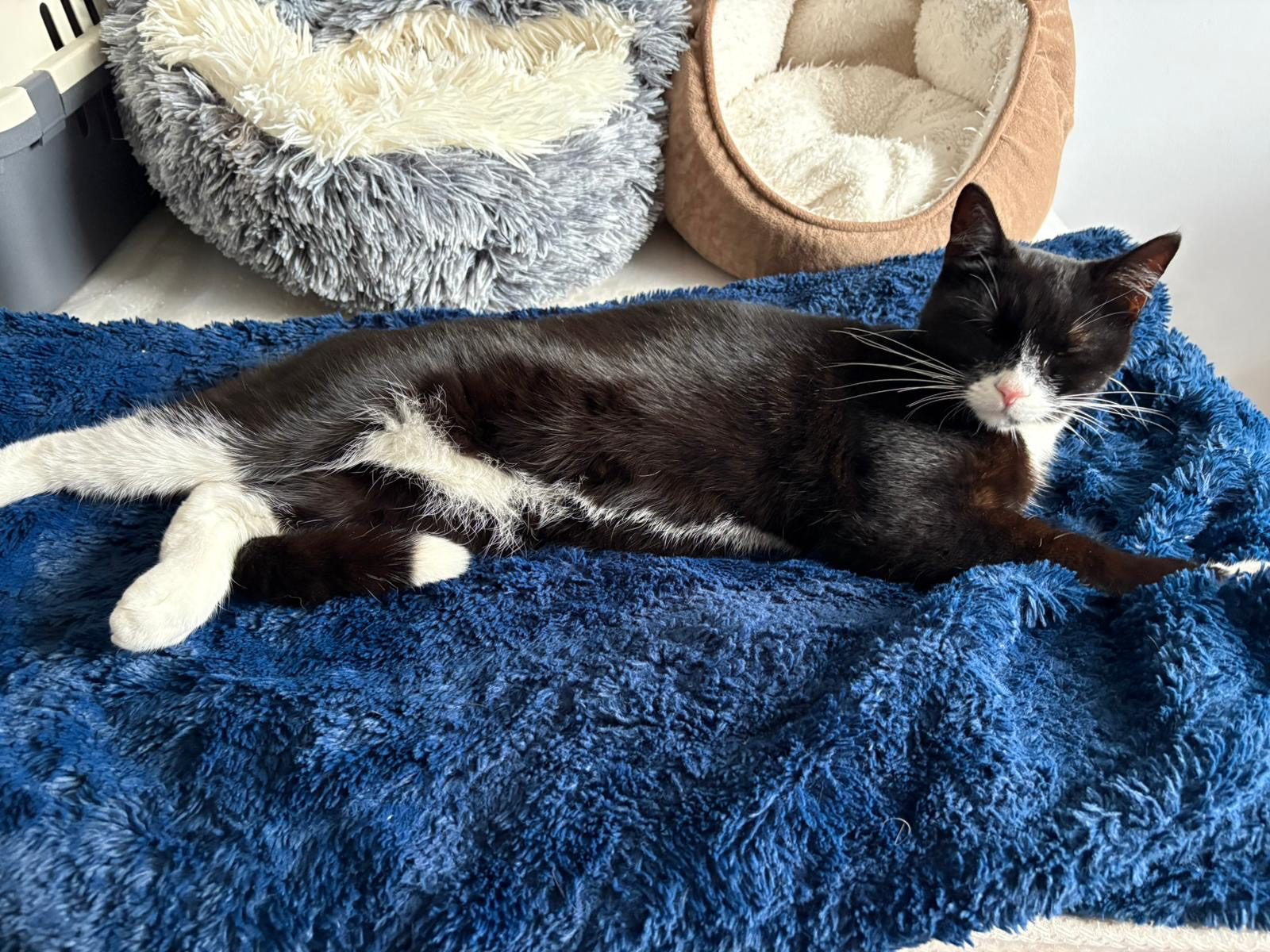 During his stay he has been very affectionate and friendly to both fosterers and volunteer visitors. He is lovely company and very playful.