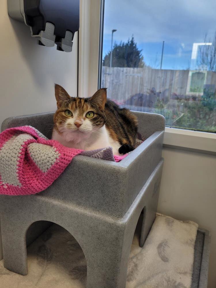 Betty is a gorgeous girl who is looking for a home in a more rural setting as this is what she has always been used to. Unfortunately the tom cat at the farm next door was terrorising her and she was very unhappy. It seems this also caused her to have stress cystitis which was possibly due to her anxiety with the other cat. She has not had any issues whilst in care. She has not been in our care for long so understandably is still a little shy and unsure of herself but her owner has assured us that she is a sweet, gentle girl and just needs her second chance.