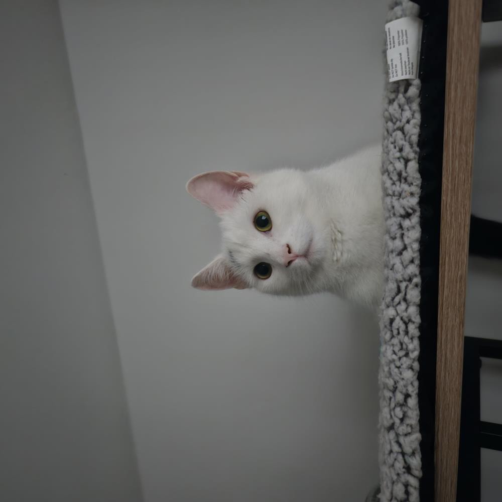 Meet Yuki an 11 month old white cat with a black tail. Yuki is being rehomed after it was discovered that he and the owner’s existing cat weren’t getting on. This is just one of those things that can happen when bringing 2 cats together and no reflection on Yuki at all.