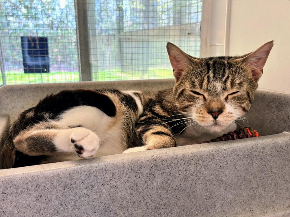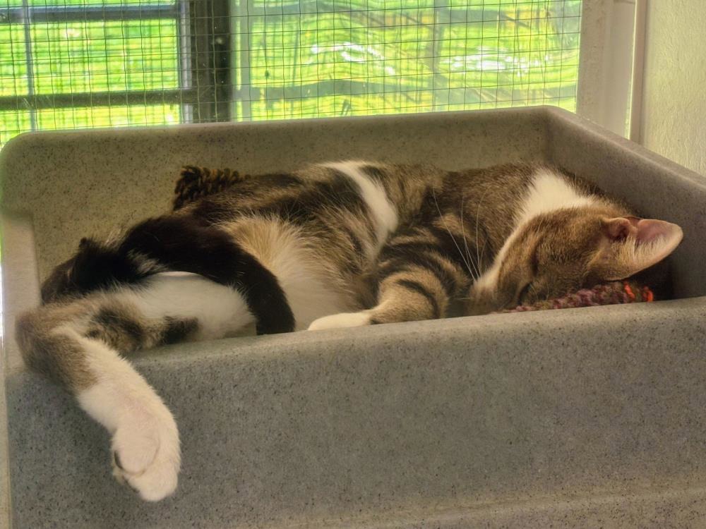 Sonny is a beautiful lad with a big heart, ready to give lots of a love. He is a little timid in centre, so we are looking for an adult-only home with no children. Sonny has never lived with other pets before, and we do feel this could be quite overwhelming for him. Sonny has FIV. Having FIV means Sonny's immune system is lower than the average cat and FIV is also transmittable to other cats. Therefore, Sonny is looking for an indoor-only home where he can be the centre of attention. Sonny will need lots of toys and activities to do during the day, to satisfy his natural behaviours and instincts.