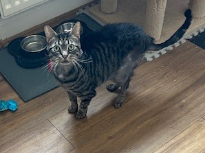 A safe, secure, quiet room to start off in would be ideal for Buddy. A room where he can have a separate area for food and water. For a litter tray placed as far away as possible from his food and water. For somewhere to hide, access to a high spot where he can view his surroundings, a suitable place to sleep or, ideally, a choice of them, a scratching post and a few cat toys and space for him to play. We would recommend a Feliway diffuser in his room, as he will likely hide away for a few days when he goes to his new home.