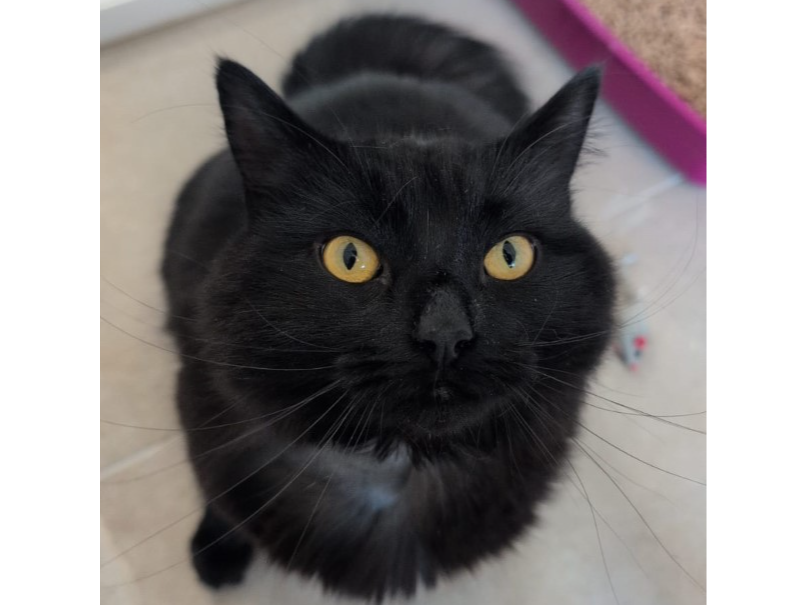 Beatrice is a handsome semi long haired black girl, half Maine Coon and just over 2 years old. She is a very playful and loving cat but isn’t getting on with the existing cat in the household, hence needing to rehome her. She is amazing with children but needs a home with other no cats or dogs. She has the most beautiful eyes.