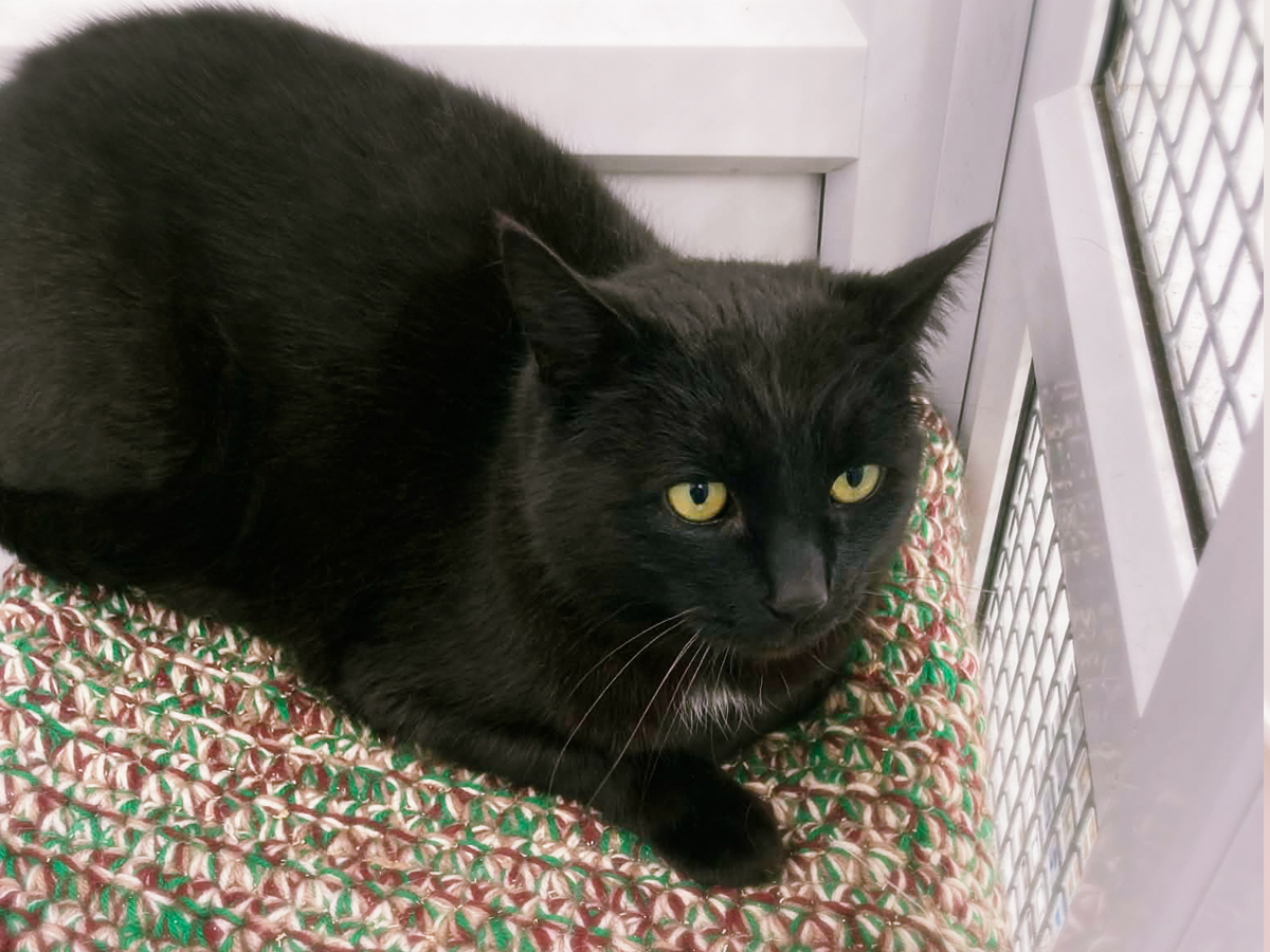 ‘Hello, I am Soxy and I am with my best friend Doodle. I’m 8 years old and a sweet gentle fella who is a bit shy. It has taken me a while just to feel confident enough to come out and say hello to my fosterer, but I’m trying so hard and lately, I’ve even started to enjoy lovely strokes.