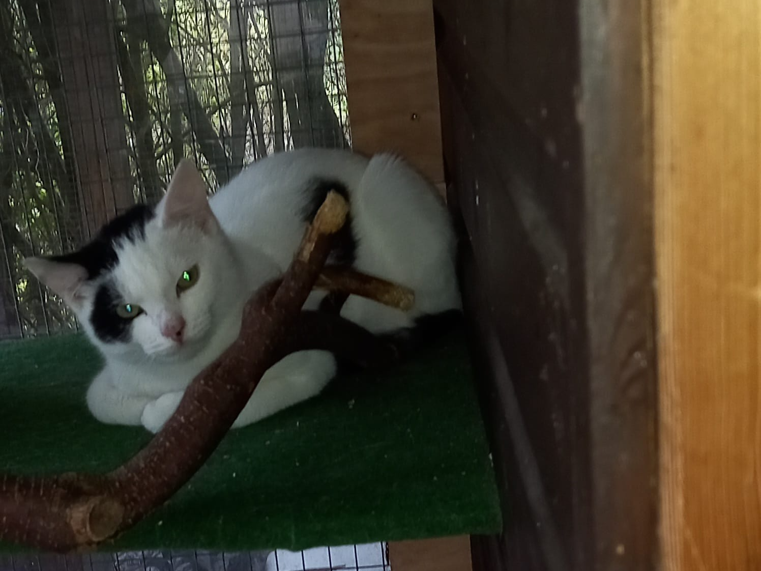 A safe, secure, quiet room to start off in would be ideal for Fury. A room where he can have a separate area for food and water. For a litter tray placed as far away as possible from his food and water. For somewhere to hide, access to a high spot where he can view his surroundings, a suitable place to sleep or, ideally, a choice of them, a scratching post and a few cat toys and space for him to play. We would recommend a Feliway Optimum diffuser in his room, as he will likely hide away for a few days when he goes to his new home.