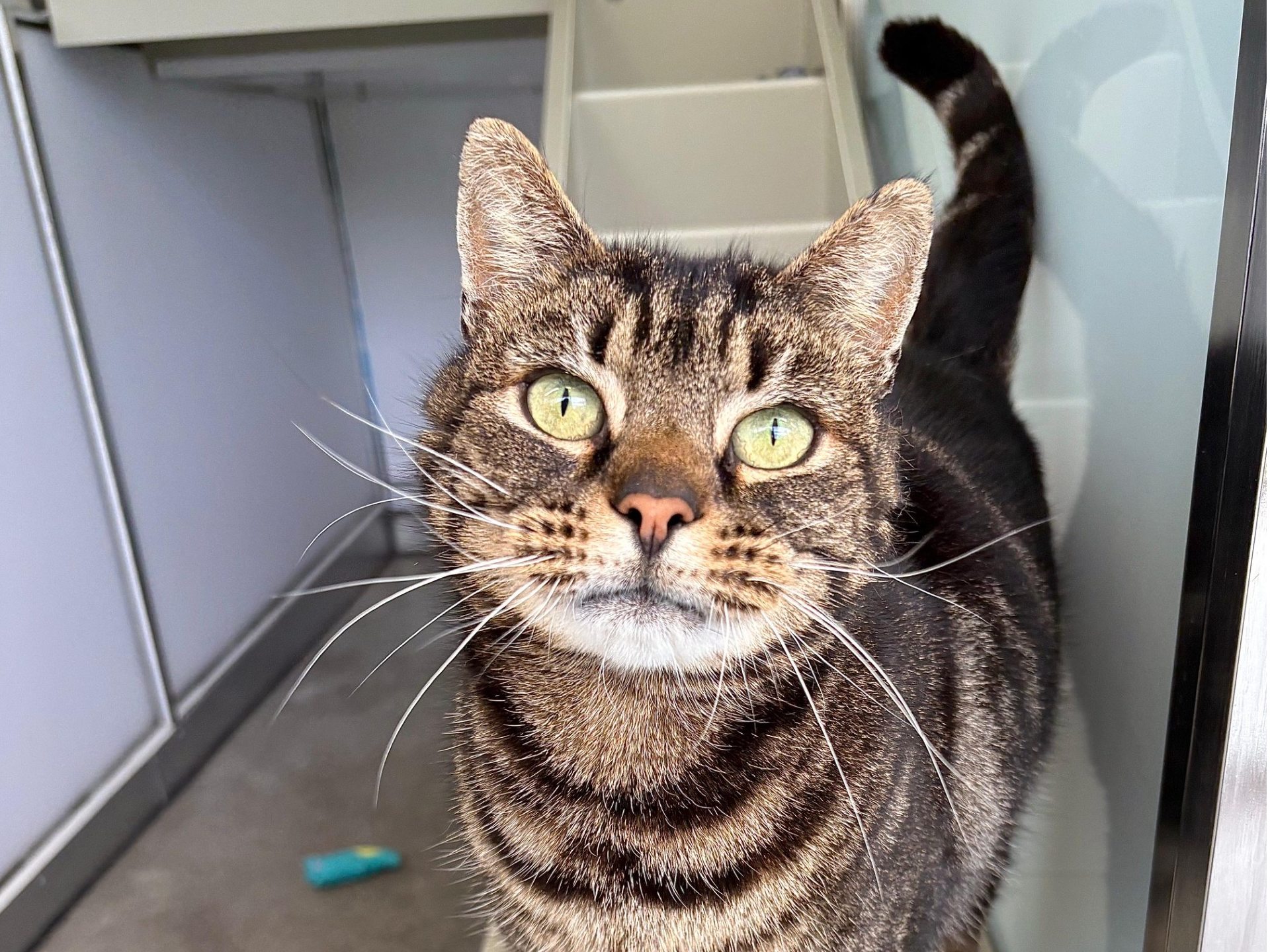 Simon Pure is a handsome 9½-year-old tabby gentleman who came into our care as a stray and, sadly, was never claimed. Despite this, he’s kept a wonderfully positive and affectionate outlook on life. He’s a lovely chap with a lively, curious nature and enjoys being right at the heart of things. Simon is often the first to pop out of his bed in the morning to greet everyone, and he’s always happy to spend time socialising with staff and volunteers. He really thrives on human company while still keeping a nice balance of independence. Simon Pure is used to having plenty of outdoor access, so he’ll need a home where he can safely explore outside. He would be best suited as the only pet in the household, where he can enjoy all the attention to himself. He may be well suited to a home with older children or teenagers who can respect his space. With his charming mix of sociable and independent traits, Simon Pure would make a wonderful companion for someone looking for a friendly but easy-going feline friend.