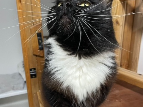 This cute boy came in with his Mum Mittens. His background was very unsettled as he was being cared for by a neighbour and never neutered. Eventually his owner moved away and gave permission for the feeder to rehome him to a more settled and stable environment.