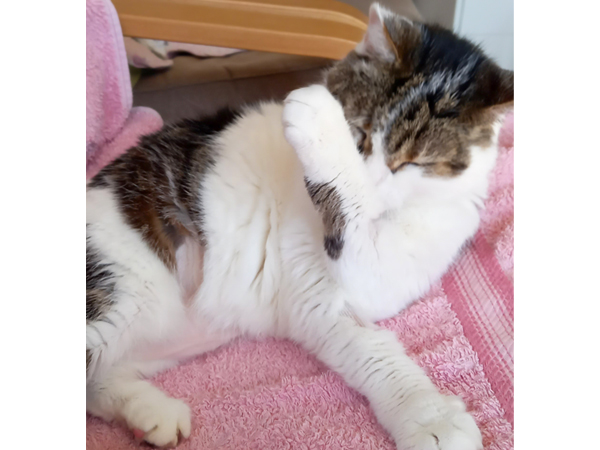 She enjoys sitting close by your side and will happily ask for the occasional head rub. As her confidence grows, she will even cosy up on your lap, offering comfort and companionship.