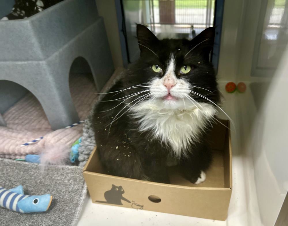 This handsome boy is looking for his furrrrever home! He's a sweet boy but can be a little weary at times but he does love a head tickle once he gets to know you! His favourite time of day is meal time of course! Mr Bojangles was a stray so not much is known about his past but from what we do know he loves catnip!