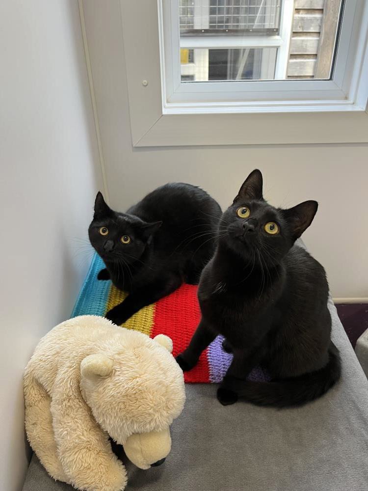 A change of family circumstances meant they came into our care. Rumi can be a little bit wary of strangers at first, however, in his previous home he would sit on a lap, sleep on the bed and loved to play with a mouse toy, balls and fishing rod toys. He would hide at first but then quickly warm up to cat sitters and visitors once having fuss/playing with them. Luna is the more confident out of the two of them. She enjoys playing with her mouse toy and balls, and she is very curious. She likes to sit on the windowsill and watch the world go by. Neither of them has experienced the outside world, so a garden for them to explore would be great enrichment for them both. Both like a fuss, and often sleep cuddled up on top of each other, with Rumi (the bigger of the two) using Luna as a pillow!
