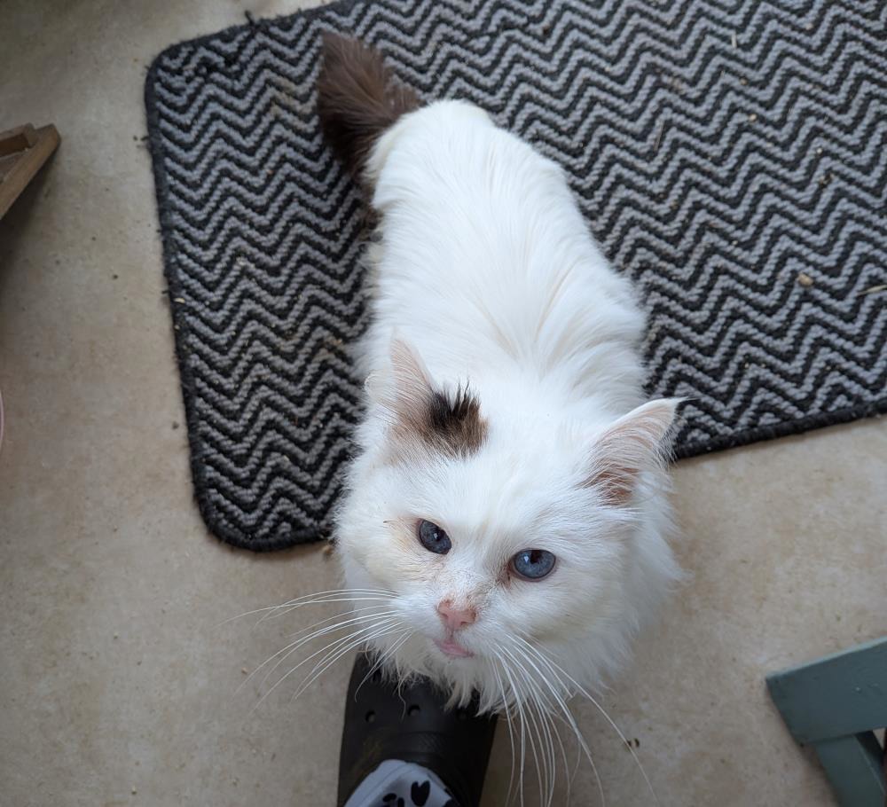 This sweet lady is looking for a new home due to the death of her owner. Suzie is 10 years old. She is a gorgeous, long-haired blue eyed cat, who will need her coat brushing regularly. She is super friendly and loves being brushed and any kind of fuss. She loves cuddles.