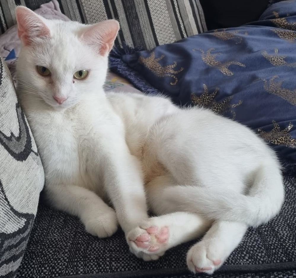 Bella was initially very nervous when she arrived at her foster home, so she will need a quiet place with all her resources initially. Very soon she blossomed into a very loving and affectionate cat who loves human company and playing with her toys. She loves being near her foster carers and just relaxing in their company.