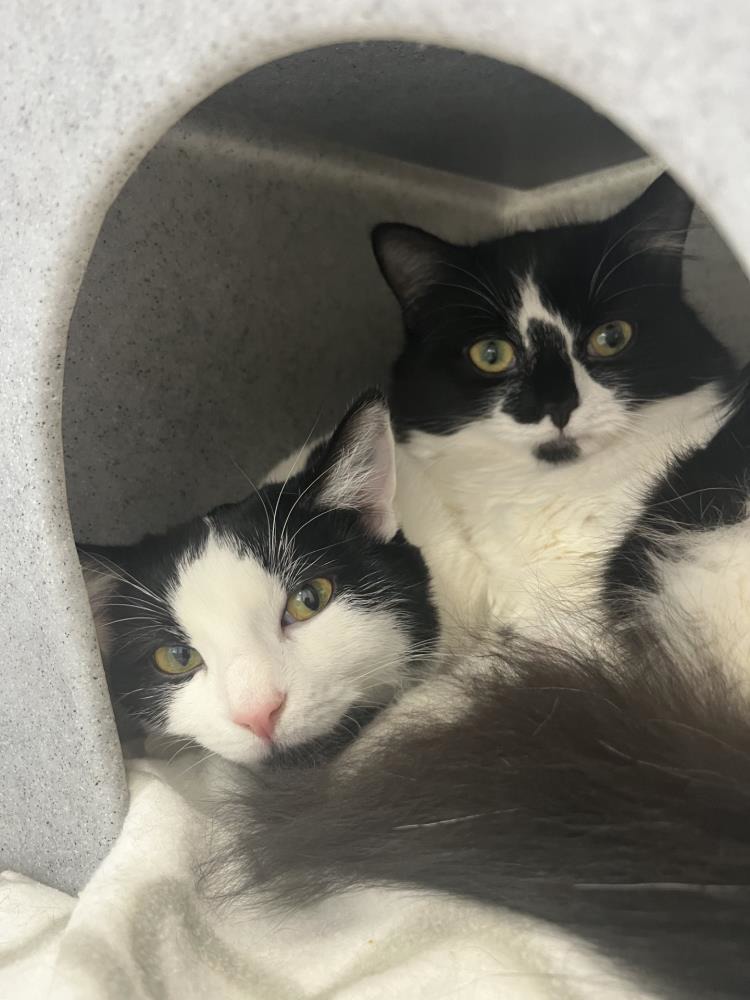 Bambi and Nala came into our care after their previous owners could no longer keep them. They are an affectionate and gentle pair who are looking for a new home together. They are friendly girls who love to curl up together, and purr away when they have company. Bambi is a little more confident and is usually the first to greet you, while Nala can be little more shy, but will eventually follow Bambi's lead! They are looking for a quiet home with no children or other pets.