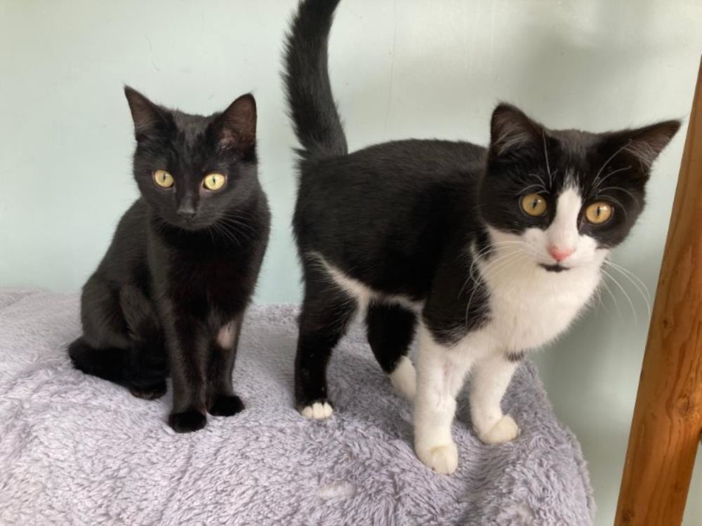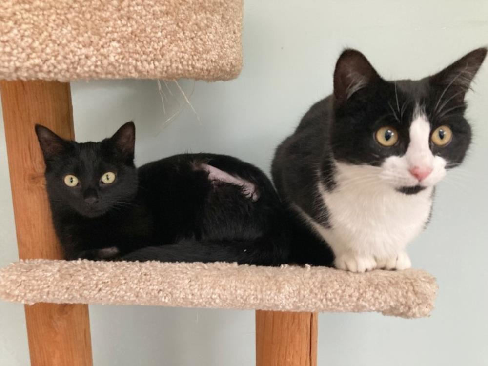 FLORENCE (black and white) and GERTRUDE (black) are approximately seven month old sisters who are the most delightful kittens! Everyone who has met them has fallen in love with them!