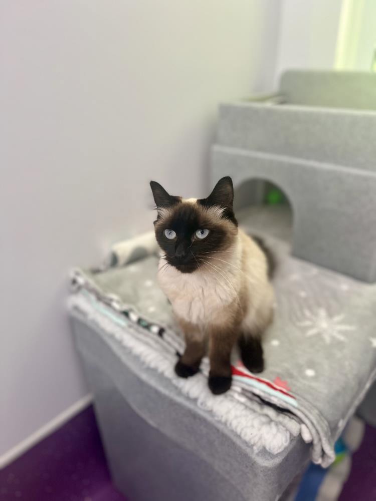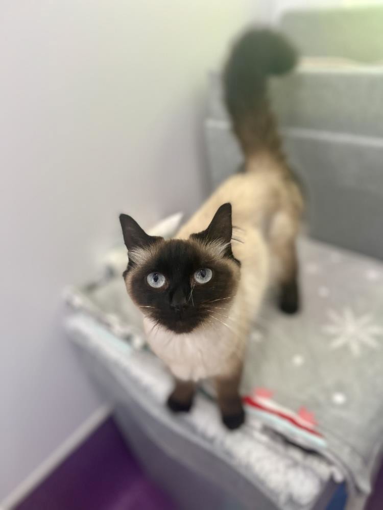 Molly came into our care after her previous owner was no longer able to keep her. She is a chatty and affectionate girl who loves company, plenty of fuss, and curling up on a warm lap. While she is very sweet and friendly, Molly prefers affection on her own terms and may give a gentle swipe when she’s had enough. Molly would be best suited to a quiet home where she can relax and feel secure. She will need an environment without children or other pets, allowing her to enjoy all the attention at her own pace.