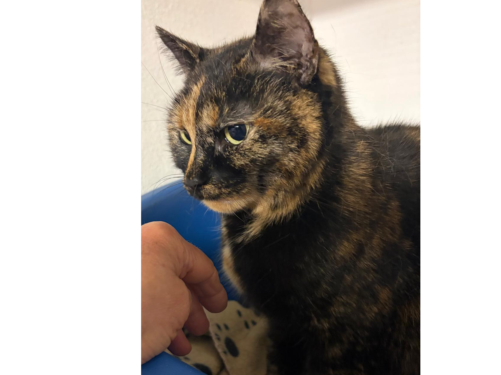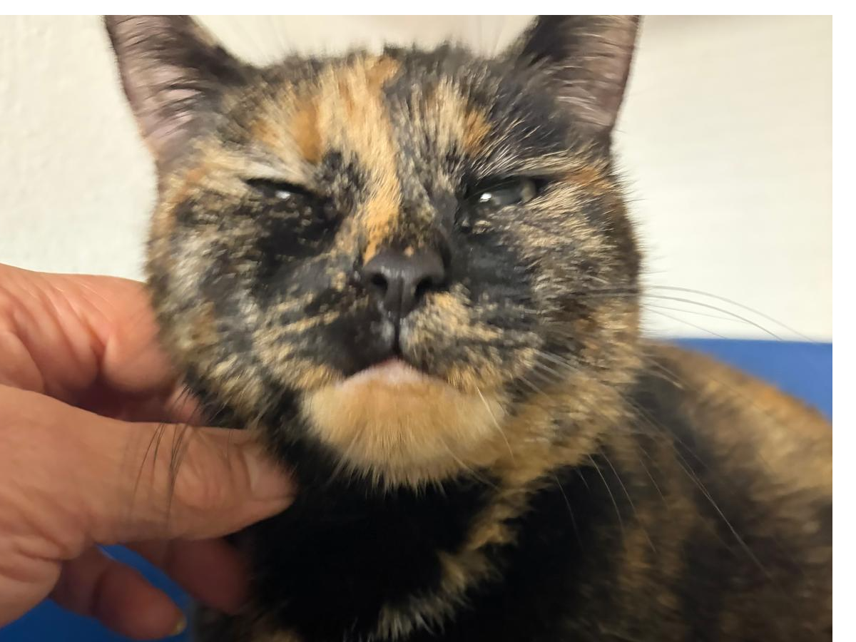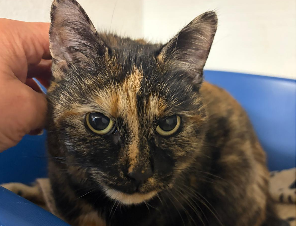 This little lady is the gentlest of souls. She came from poor conditions with lots of other cats and probably spent most of her time hiding. We are gaining her trust with gentle fuss and now she will purr happily. Marmite needs a quiet, understanding home, in which to feel completely safe. She unlike most torties doesn’t have an aggressive bone in her body and in the right home will transform into a lap cat we are sure. Marmite has been used to outside access, so a safe garden in which to sunbathe is a must. Once settled into your home and hearts, we don’t think this little lady will want to wander far. Could you offer Marmite the home she deserves, where she feels, safe and loved?