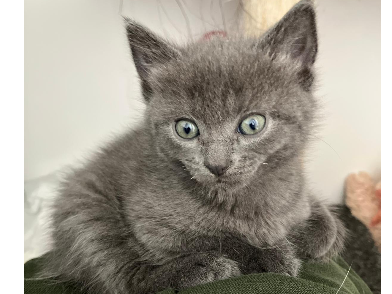 Hello, I’m Lara I am a grey 9 wk old kitten looking for my forever home.