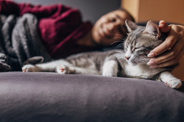 An unfamiliar scent or change in routine can cause your cat to change their behaviour. They may start showing increased affection towards you, becoming clingy and perhaps lying on your belly. Or they may become a bit withdrawn or unhappy.