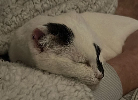 “When we first met her she was so timid I did wonder if we were doing the right thing - but the second time I knew it was right. For the first few days she didn’t come out her bed but within a week she was moving around the house which is why we renamed her Dora as she’s always exploring! I wouldn’t say having her ear tips removed has changed her quality of life at all. Before I adopted Dora I’d lost my other cat unexpectedly and was struggling, the house felt empty. Dora is amazing and has helped to mend my broken heart.”