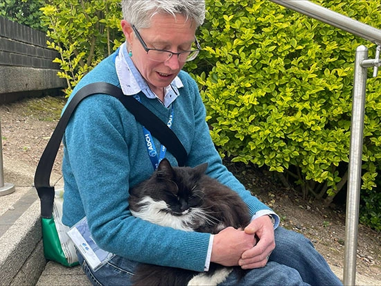 As several attendees took a break during the Association of Dog and Cat Homes conference at the Telford International Centre they were greeted by a large black-and-white cat who had taken an interest.