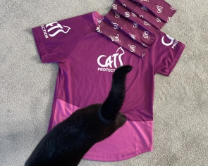 Absolutely! You can buy a purple Cats Protection tech t-shirt when signing up to wear with pride during your challenge. You also have the option to purchase a neck buff when you register to help keep you sheltered from the elements during your training! The t-shirt size guide can be found here.